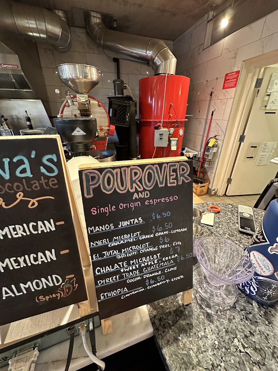 Coffee and Espresso Drinks: This group includes espresso-based beverages such as espresso shots, cortados, lattes, cappuccinos, flat whites, and Americanos available both hot and iced. Specialty options include flavored lattes with housemade syrups like vanilla, caramel, almond, lavender, brown sugar, and rose cardamom. Cold brew and nitro cold brew coffee are also featured for cold coffee preferences.